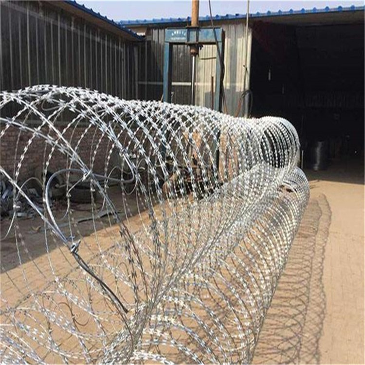 1、刀刺網網絲材質:內徑線不小于中2.5mm熱鍍鋅鋼絲。