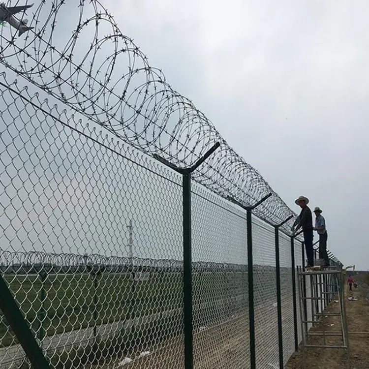 鋁包鋼勾花網之機場圍界護欄,這是近幾年來新興的一種防護網,鋁包鋼材質更加的抗腐蝕,特別適合于一些環境惡劣的地方使用。