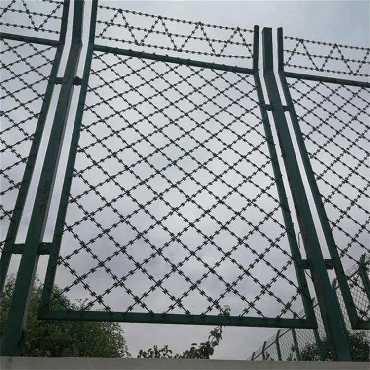 2、監獄鋼筋網圍墻網片可換成焊接刀刺網,網孔一般為 75*150mm,50*100mm,材質常用熱鍍鋅和不銹鋼 304。