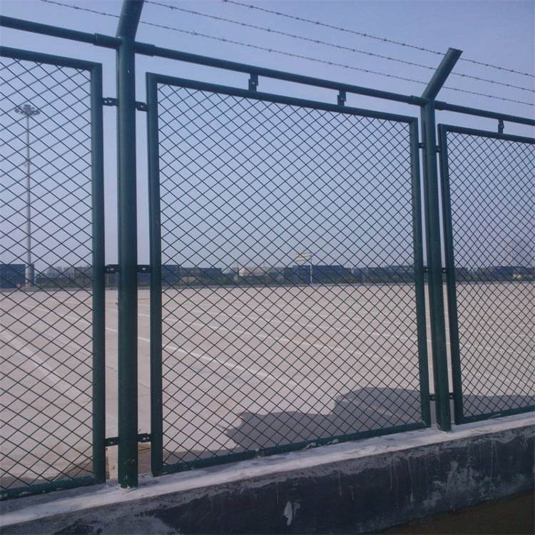 保稅區圍網主要用于,海關,碼頭,港口外圍的隔離防護。網孔: 50*100mm菱形孔,75*150mm 邊框:標準40*40mm,也可做30*40mm,還有48mm圓管;壁厚1.2mm 1.5mm居多 立柱:60*60mm方管 ,或80*80mm,部分采用75mm圓柱(邊框搭配48mm圓管),常用的壁 厚是2.0mm 、2.5mm, 標準高度:網框高2.2+折彎0.4米,寬度(中心距)為1.5米或者3米,頂部拉三道刺繩。 表面處理:浸塑。