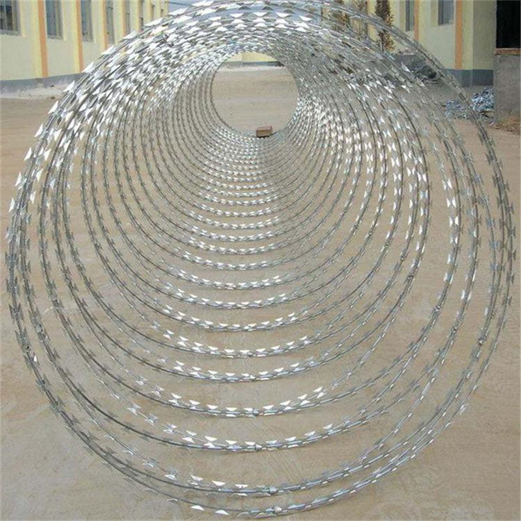 刀刺網根據使用的場景的不同叫法也不相同,監獄常用304不銹鋼刀刺網,機場多用熱鍍鋅270g/㎡上鋅量,鐵路叫刺絲滾籠。多采用120g/㎡上鋅量或270g/㎡上鋅量。