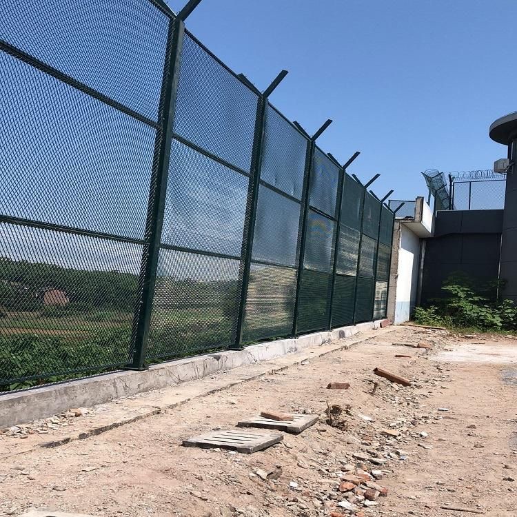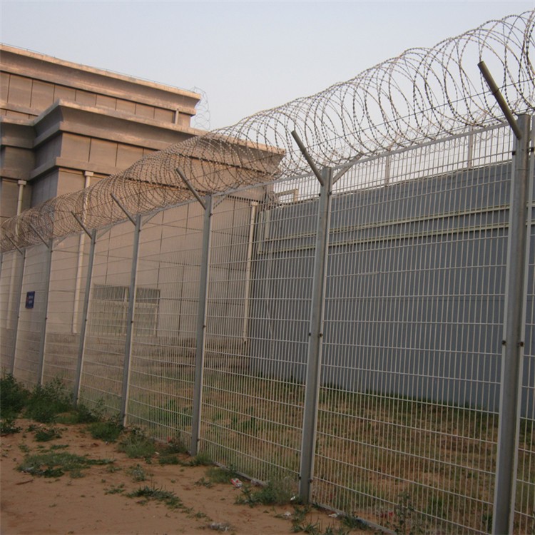 監獄鋼網墻、看守所鋼網墻、監獄圍欄網、看手所圍欄網是用在監獄防護隔離的一種鋼絲網,其特的造型合適的高度在監獄里邊起到了和好的防護作用,網高一般采用2米,立柱高度2.5米成Y字型,在2米高的網片上邊架上直徑50cm或60cm的刀刺網,整體下來高度2.5米,犯罪分子是無法攀爬或翻越的,在孔徑選擇上邊一般7cmx15cm的就可以了,但是有些客戶在設計方面會設計的小些,更能加固鋼網墻的牢固性,相對來說價格也就會偏高一點,具體的價格還是要根據客戶所需監獄鋼網墻的具體標準來核算。