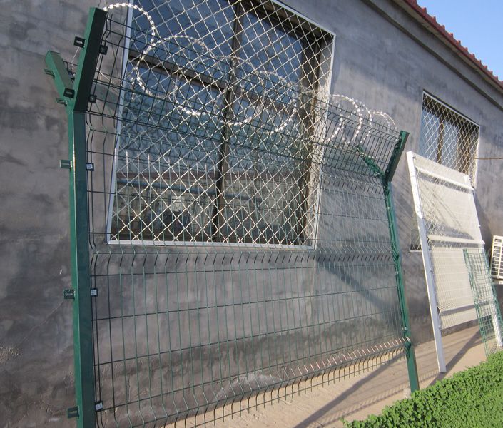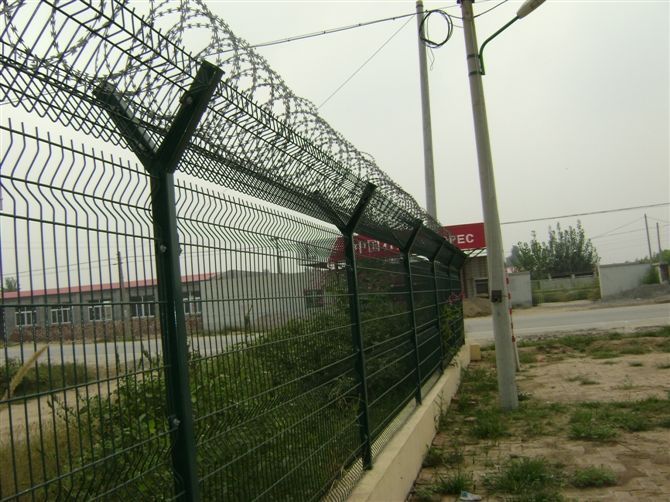 機場防護網又稱作“飛行區鋼筋網圍界”,是由V型支架立柱,加強型焊接片網,安全防盜連接件和熱鍍鋅刀片刺籠組成強度和安全防御性級別很高。近年來,被廣泛應用在機場,軍事基地等場所。注:如果在機場防護網頂部加裝刀片刺絲、刀片刺繩后又很好的增強了安全防護性能。采用電鍍、熱鍍、噴塑、浸塑等防腐形式,具有很好的抗老化、抗曬、耐候等特點。其產品造型美觀、花色多樣,既起到圍欄作用,又起到美化作用。由于具有安全性高、防攀爬能力好,網片連接方式采用特制SBS緊扣件,有效防止人為的破壞性拆卸,橫向四道折彎加強筋,使網面強度顯著增加。