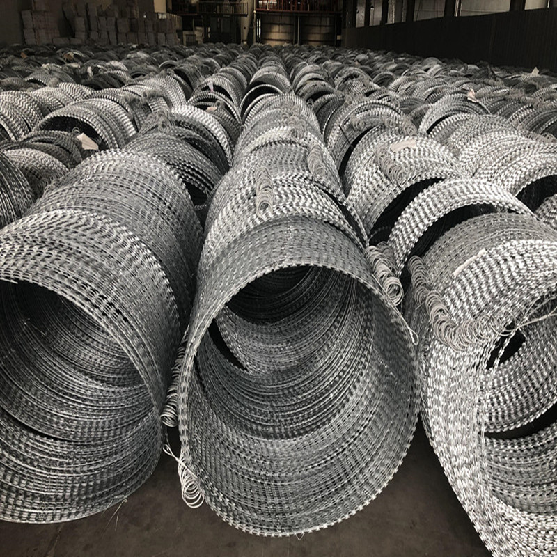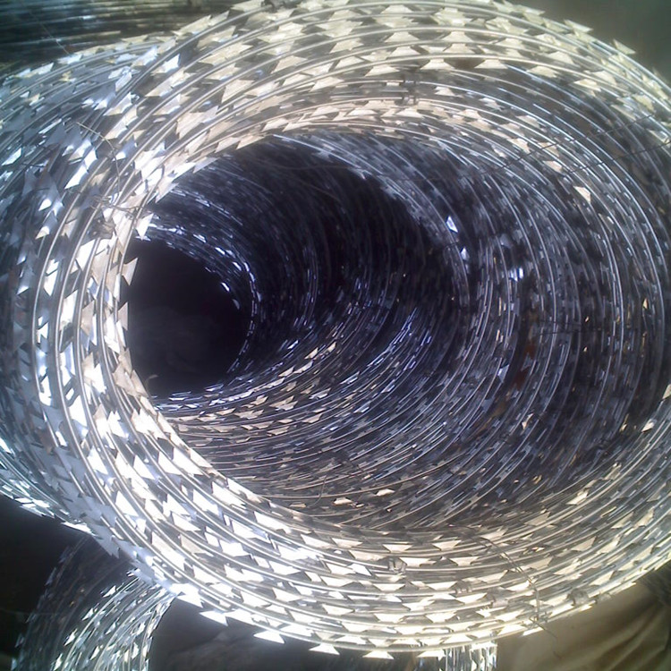 刀片刺網是一種近年起來的防護,隔離能力比較強的防護產品,采用優質鋼片沖壓尖刺包裹高強度鋼絲壓制而成,雙線用卡扣銜接固定,呈現螺旋型,即美觀又讓人不寒而栗,起到了很好的阻嚇作用。