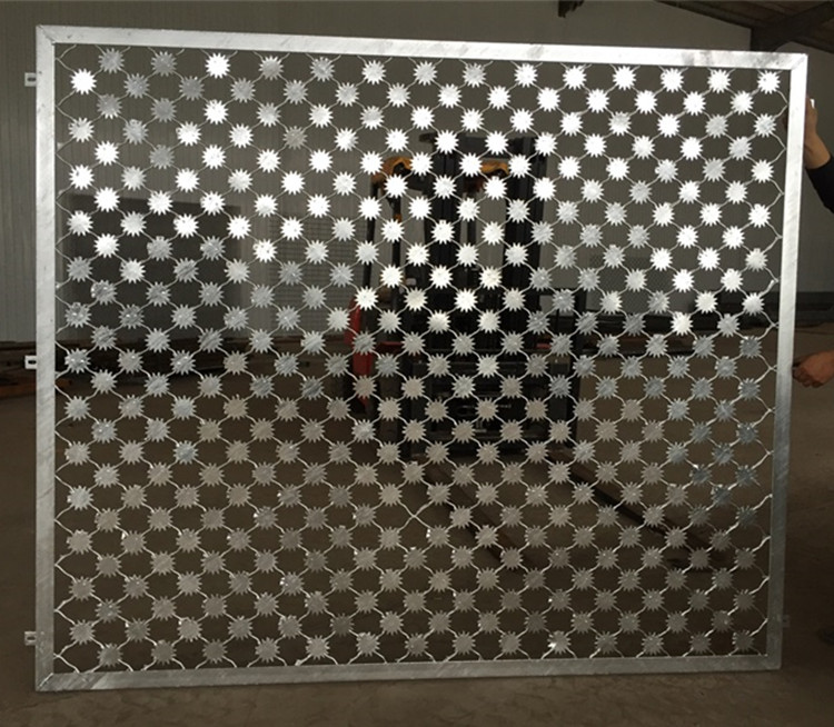 太陽花刺鋼網墻,其產品結構威懾效果非常好,每一個格子之間都均布刺片,達到防止手攀腳蹬的效果。目前在監獄、看守所等系統中常用,可以用在警戒區、監舍監區隔離網、車行通道、AB大門等地方,除此之外,還可以用在油庫、安全防護隔離區域等,以及看守所、戒毒所、少管所等這些地方,目前使用這種具有威懾性的隔離網產品比較多,應用范圍非常的廣泛。