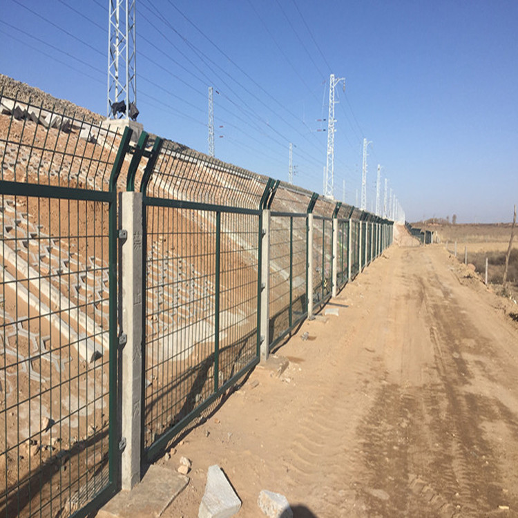 8001鐵路防護(hù)柵欄 鐵路專業(yè)防護(hù)網(wǎng)有耐用、美觀、視野開闊的特點(diǎn),并具有優(yōu)良的防護(hù)性能。整個(gè)鐵路封閉網(wǎng)采用立柱采用混凝土澆筑件,工程造價(jià)低、整體強(qiáng)度高整體穩(wěn)定性好,網(wǎng)體上的彩色塑層具有良好的抗腐蝕和裝飾效果,使網(wǎng)圍界整體和諧美觀。鐵路防護(hù)柵欄主要用于鐵路封閉高速公路護(hù)欄及開發(fā)區(qū)圍界和場(chǎng)區(qū)圍網(wǎng)使用。