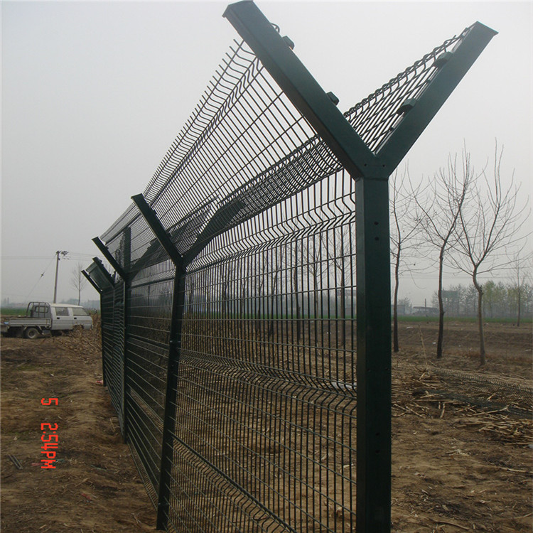 機(jī)場護(hù)欄網(wǎng),我們稱之為“Y型柱”護(hù)欄網(wǎng),通俗叫法有機(jī)場圍網(wǎng)、機(jī)場隔離網(wǎng)。是機(jī)場邊界的重要保護(hù)措施、防攀爬能力強(qiáng),有效防止人為破壞性拆卸和對機(jī)場設(shè)施的破壞,保證機(jī)場安全,讓飛機(jī)起飛更加順利。主要用于機(jī)場封閉、監(jiān)獄防護(hù)、軍事重地、開發(fā)區(qū)隔離等高安全場所。