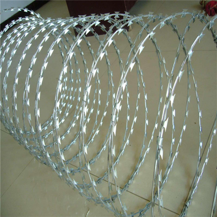 刀片刺網(wǎng)是一種近年起來的防護,隔離能力比較強的防護產品,采用優(yōu)質鋼片沖壓尖刺包裹高強度鋼絲壓制而成,雙線用卡扣銜接固定,呈現(xiàn)螺旋型,即美觀又讓人不寒而栗,起來了很好的阻嚇作用。