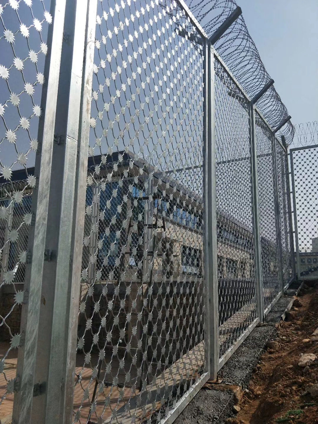 監(jiān)獄梅花刺隔離網(wǎng)又叫沖壓刺隔離網(wǎng)、太陽花刺片隔離網(wǎng),行業(yè)內(nèi)簡稱梅花刺網(wǎng)。其特點為堅固牢靠、防止攀爬等。梅花刺隔離網(wǎng)一般用于監(jiān)獄大門,探監(jiān)門,人員通道兩邊的隔離網(wǎng),由于其成本造價高,所以還沒有廣泛替代焊接式隔離網(wǎng)。