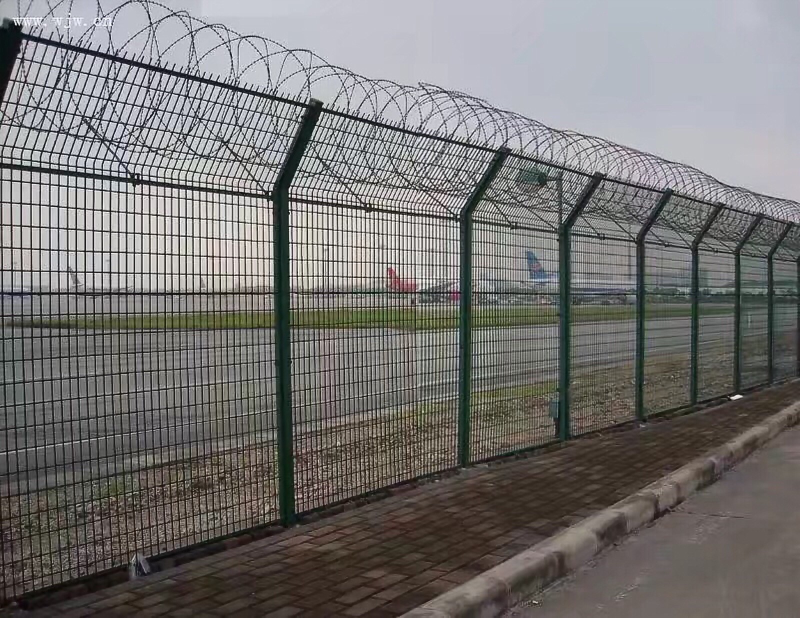 機(jī)場隔離防護(hù)圍界網(wǎng)是一種安全防護(hù)程度極高的護(hù)欄網(wǎng),一般用于機(jī)場和監(jiān)獄,也稱為:機(jī)場鋼筋網(wǎng)圍界,監(jiān)獄鋼筋網(wǎng)圍界。鋼筋網(wǎng)圍界一般為Y字形,它在護(hù)欄網(wǎng)原有基礎(chǔ)上加裝了蛇腹網(wǎng)(刀片刺繩)大大增加了安全防范性能。下部網(wǎng)片部分,結(jié)構(gòu)簡練便于安裝運(yùn)輸,安裝不受地形起伏限制,多彎地帶適應(yīng)能力極強(qiáng)。用于飛機(jī)場,監(jiān)獄周邊防護(hù)