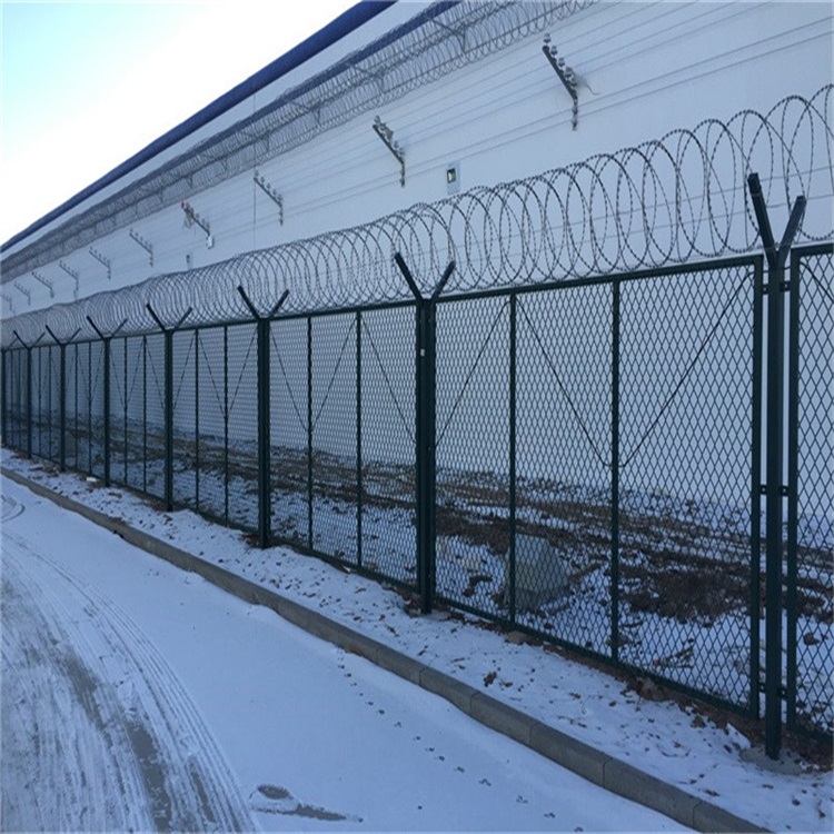 監獄護欄網又稱作“Y型安全防御護網”監獄鋼網墻,是由V型支架立柱,加強型焊接片網,安全防盜連接件和熱鍍鋅刀片刺籠組成強度和安全防御性級別很高,近年來,被廣泛應用在監獄,機場,軍事基地等高安全場所。