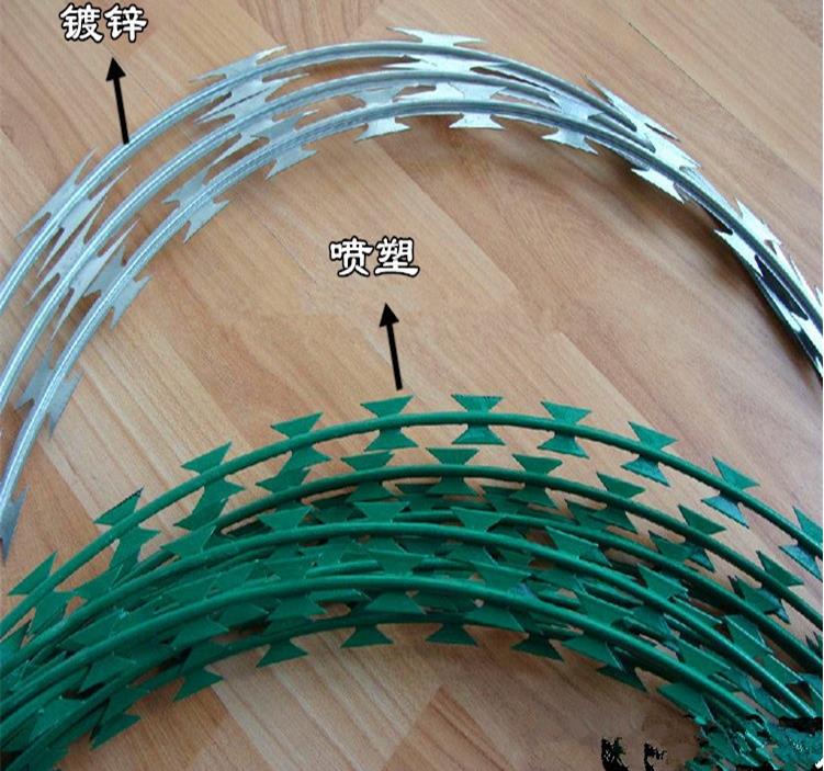 2. 芯線:熱鍍鋅鋼絲或鐵絲,普鋅絲或高鋅絲,絲徑范圍2.5mm-3.0mm,主要影響刀片網的抗拉強度,取決于使用環境的安全等級。