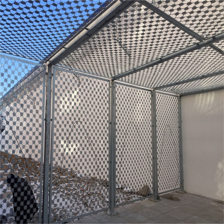4.刀片滾網、拉絲、卡扣,均采用不銹鋼材質。刀刺網安裝固定卡扣整體調正,使刀刺網不出現擰轉情況,刀刺刺圈分布均勻,每隔30-40cm與拉絲固定:分段連接處需將兩端刀刺網做連接固定,刀刺網固定點需緊鎖不得出現松動,脫落現象;刀刺網安裝與隔離網平行,上下左右均成直線延伸,轉角處需做加密加固處理。