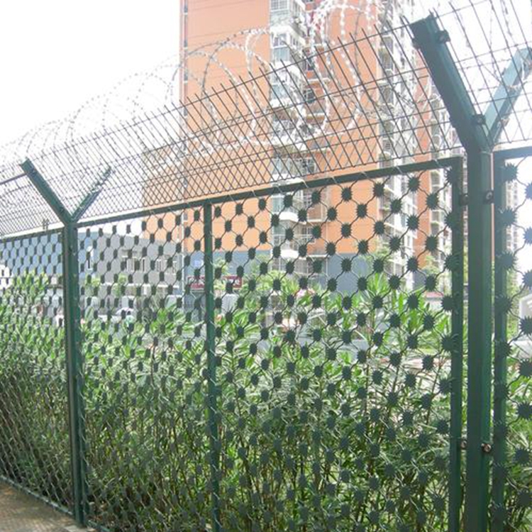 梅花刺隔離網連接、緊固件應采用防盜專用螺栓(螺母)加彈簧墊,安裝固定后無專用工具無法拆卸,安裝配件均采用熱鍍鋅處理。