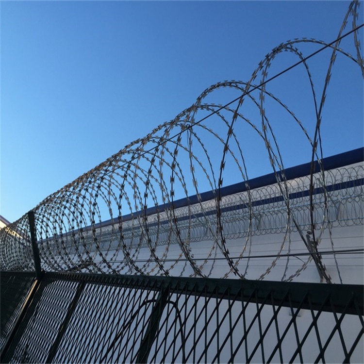 刀片刺絲又名:刀片刺繩、刀片刺網、機場護欄網、監獄圍墻刺網、刺絲滾籠。按生產風格劃分:蛇腹型刀片刺絲、直線型刀片刺絲、平面型刀片刺絲。按刀型規格劃分:BTO-10刀片刺絲,BTO-12刀片刺絲,BTO-18刀片刺絲,BTO-22刀片刺 絲,BTO-30刀片刺絲,CBT-60刀片刺絲 及CBT-65刀片刺絲。其中BTO-22刀片刺絲最為普通規格。