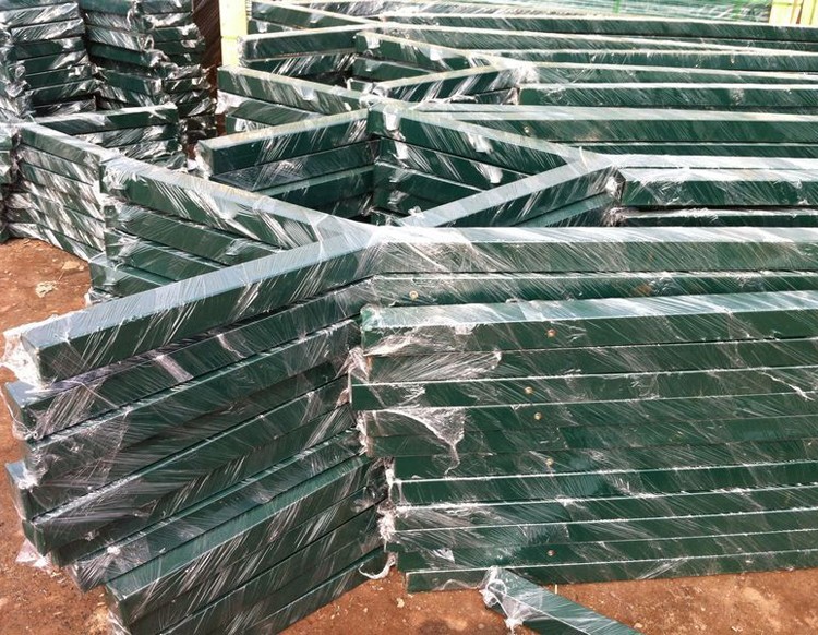 機(jī)場(chǎng)護(hù)欄網(wǎng)的常用規(guī)格是:整體高度2.5米,寬度3米,立柱采用60×60方管,網(wǎng)片采用3.5-4.0mm低碳鋼絲焊接網(wǎng)孔一般為50×100mm,50×200mm及60×120mm等。表面處理一般采用鍍鋅+噴塑的雙層防腐處理方式。也有部分地區(qū)為增加抗腐蝕性而采用鍍鋅+浸塑的防腐處理方式,用V型支架立拄,加強(qiáng)型焊接片網(wǎng),安全防盜連接件和熱鍍鋅刀片刺籠組成強(qiáng)度和安全防御性級(jí)別很高.