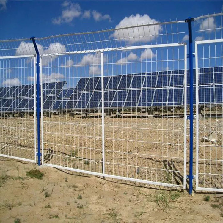 光伏電站圍欄網也叫光伏圍網、光伏電站圍欄、光伏防護隔離網。用來防止其他人或物對防護網內的光伏設施造成破壞,避免不必要的經濟損失。光伏圍網采用的是金屬絲焊接成網片,然后通過立柱將網片進行固定,從而將光伏設施進行圈圍,起到很好的防護隔離作用。