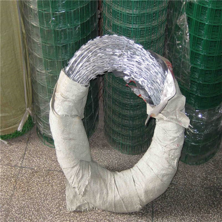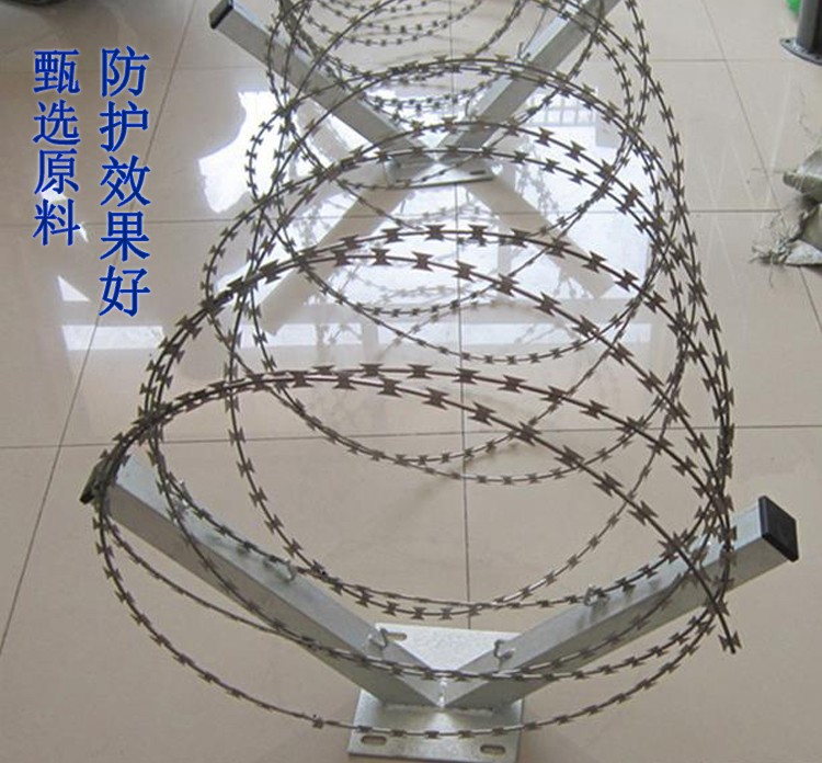 螺旋式刀片刺網是由熱鍍鋅鋼板或不銹鋼薄板沖壓出尖銳的刀片狀,高張力鍍鋅鋼絲或者不銹鋼絲做芯線組合而成的阻絕器材.因其具有鋒利的刀片,讓人望而生畏,起到很好的阻嚇效果?,F已廣泛使用,根據使用場地不同,安裝間距也不一樣。