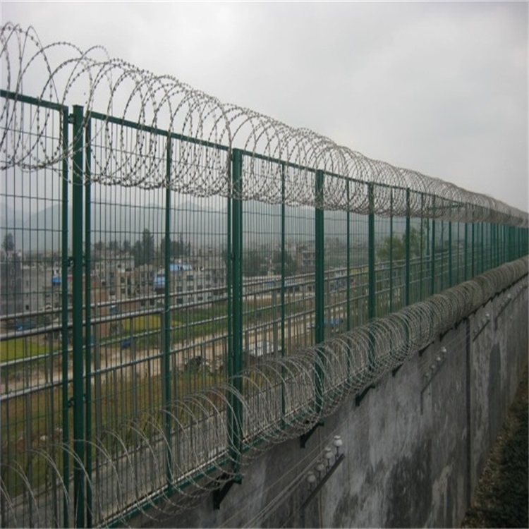 監獄護欄網因其上方要安裝刀刺網來增加護欄網的安全性,大多采用Y型的立柱,所以又被稱Y型安全防御護網、監獄防攀爬隔離網。可平地安裝,也可在圍墻上二次安裝,有效防止攀逃。直刺式刺網隔離帶,是用柱體和普通刺繩橫、縱、斜向交叉綁定成刺網隔離帶。主要用于特殊地帶、軍事基地圈護、溝壕圈護,安裝簡易,經濟耐用。