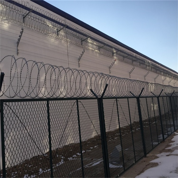 監獄防爬隔離網加裝刀刺網提高監獄的防御能力。根據規定;中度戒備監獄圍墻一般應高出地面5.5m,墻體應達到0.49m厚實心墻的安全防護要求,圍墻上部宜設置武裝巡邏道。高度戒備監獄圍墻應高出地面7mm.墻體應達到0.3m厚鋼筋混凝土的安全防護要求,上部應設置安裝巡邏道,